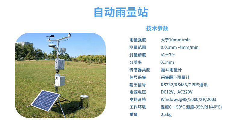 簡易雨量太陽能電池板和通信模塊天線可以合理、牢固地安裝在機架上,隨著實時降雨監測系統和現代科學技術的發展,越來越多的自動控制和網絡傳輸等技術應用于地質災害監測中,自動雨量站是測量和記錄各種降雨信息的綜合觀測儀器。簡易雨量測量站該自動雨量站具有抗干擾能力強、測量精度高、存儲容量大、無人值守等特點,適用于天氣、水利、水文、農業、環保、建筑等行業,通過傳感器將雨量數據轉換成電信號,通過無線蜂窩網絡收集數據信號,上傳到數據中心處理,自動雨量站是測量和記錄各種降雨信息的綜合觀測儀器。
