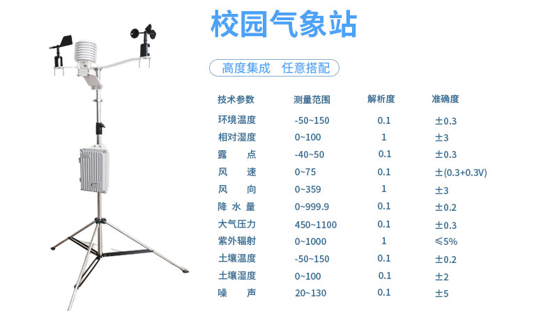 3.標準rs232/485/usb通信功能,支持標準的modbus通信協議,校園氣象站可以通過有線連接、局域網連接數字無線電、3g通信、衛星通信等形成氣象監測系統。